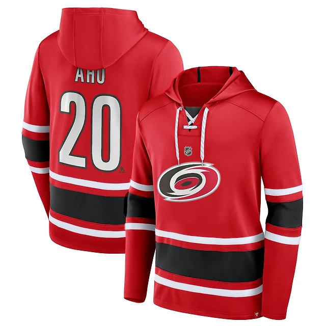 Fanatics pour hommes Sebastian Aho Red Carolina Hurricanes Nom et numéro Pull à capuche lacets