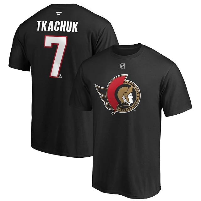 Fanatiques pour hommes de marque Brady Tkachuk noir Logo des Sénateurs d'Ottawa Nom et numéro authentiques la pile - T-shirt