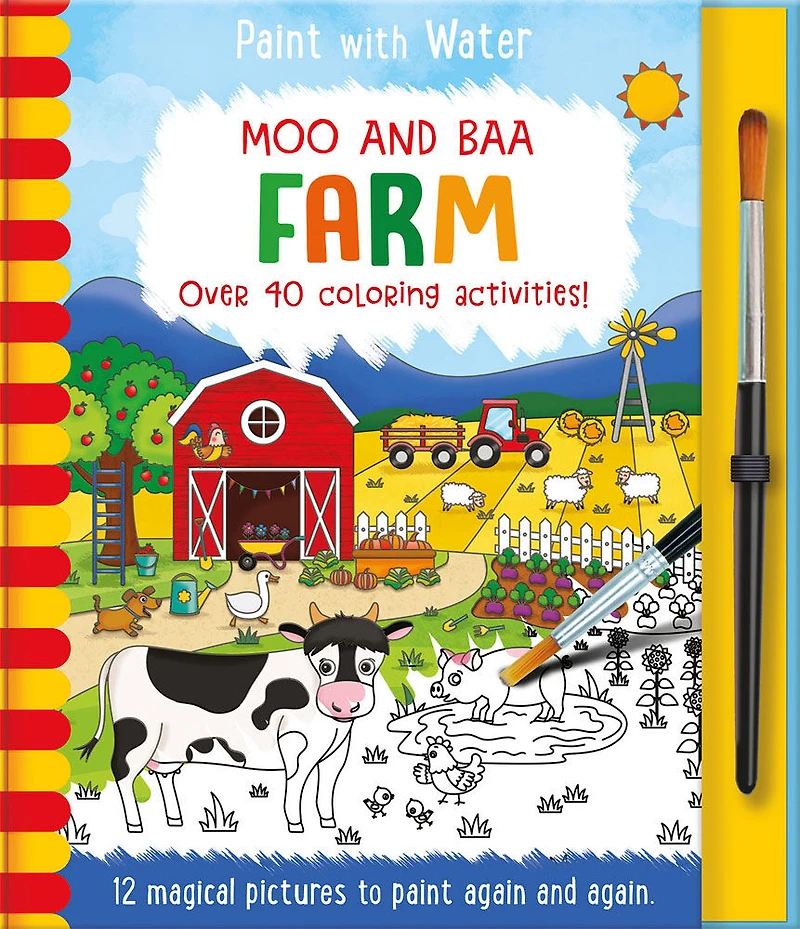 Magical pictures you can color again and again! Create colorful farm pictures with this Paint with Water book. Simply paint with water, leave to dry, then paint your pictures again! This book includes 12 magical coloring pictures to paint with water, fun farm animal facts, and 18 different pictures to color with pencils or crayons. You can use the blank pages at the back to draw, color, and create your own farm animal pictures too.