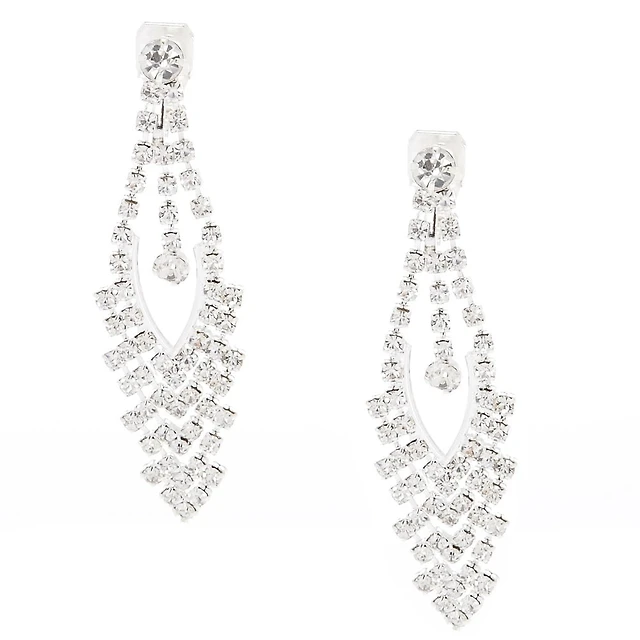 Faux Crystal Clip-On Drop Earrings