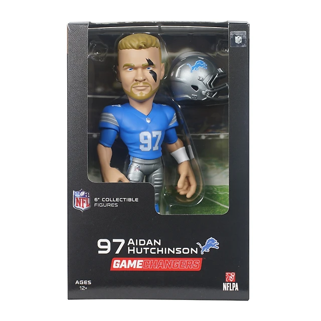 Figurine en vinyle GameChanger de 6 pouces de la série 5 des Lions de Detroit d'Aidan Hutchinson - Recherchez des variantes de couleurs unies rares