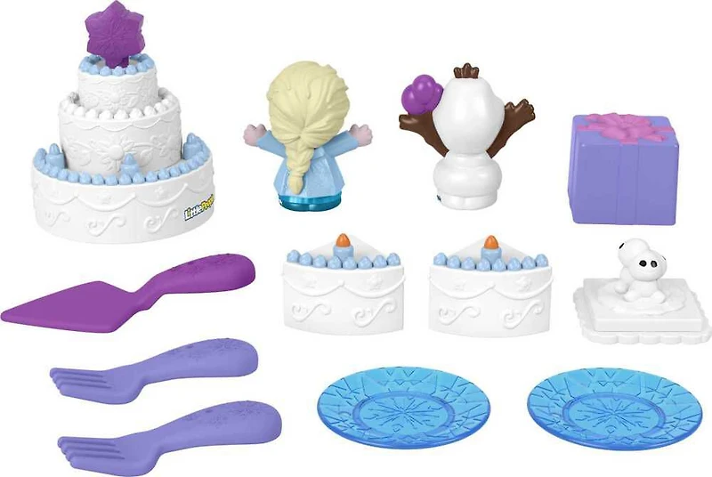 It's party time in Arendelle, and your child is invited to the festivities! Young fans can act out fun birthday party stories with Disney Frozen characters Elsa and Olaf with this Little People pretend playset from Fisher-Price. Kids can spin the top of the cake, serve slices to their Disney Frozen friends, and even open the gift box for a surprise!