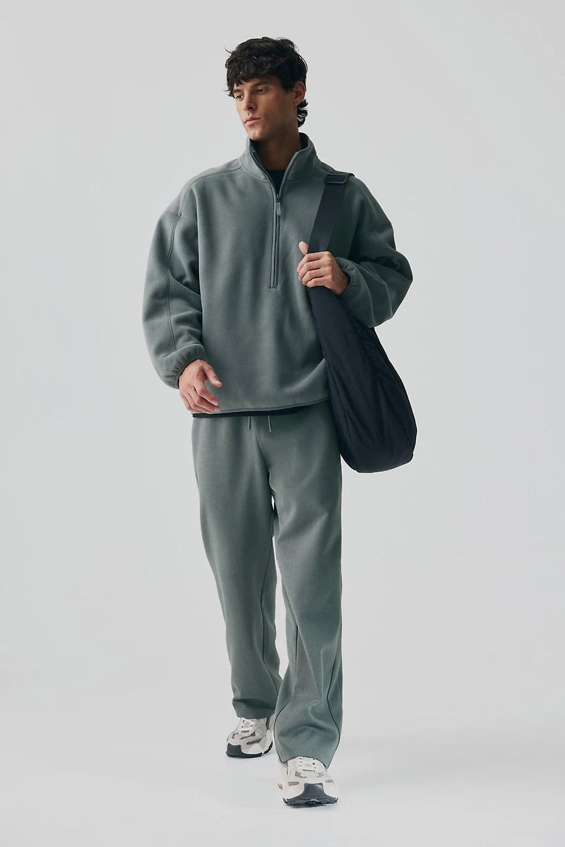 Relaxed-fit sports shirt in warm fleece. Stand-up collar, half-zip, side pockets, dropped shoulders, and long sleeves.
