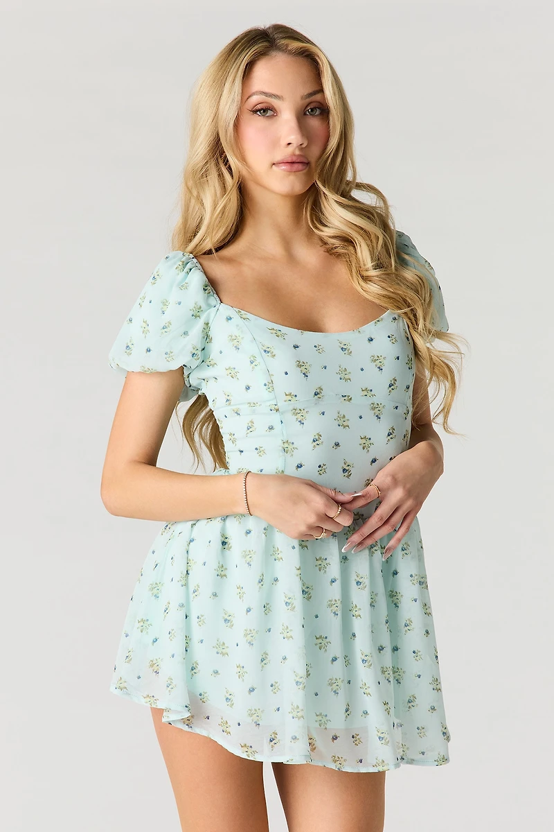 Floral Ditsy Print Chiffon Romper