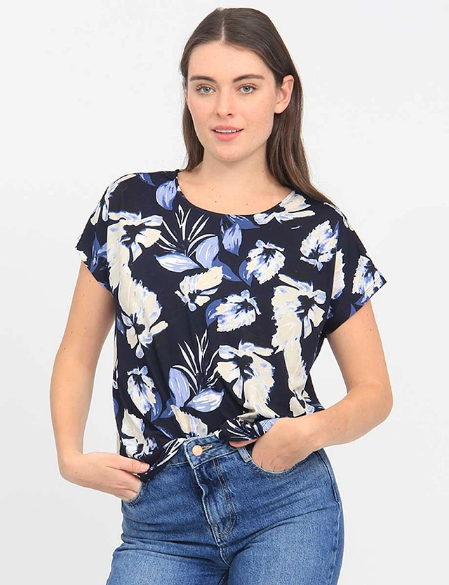 Floral ITY Round Neck Tunic with Three-Quarter Sleeves by Vamp
