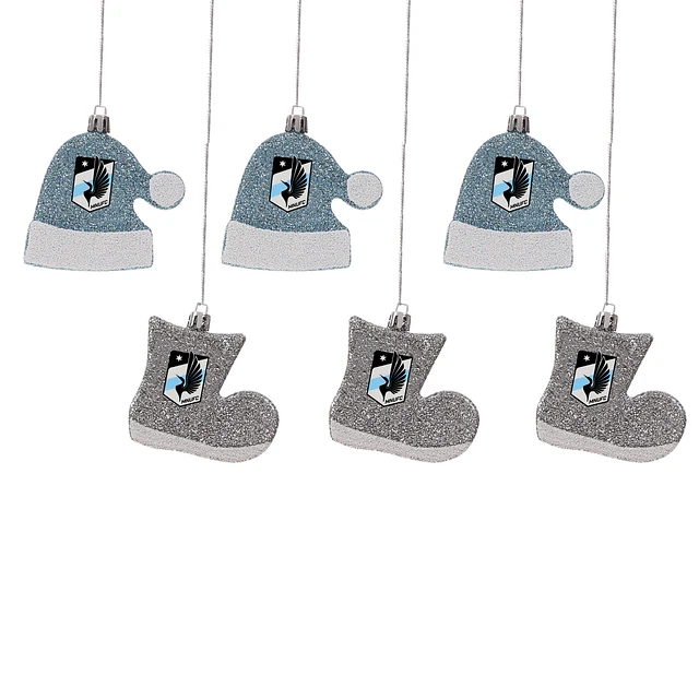 FOCO Minnesota United FC Six-Pack Shatterproof Santa Hat & Stocking Ornament Set