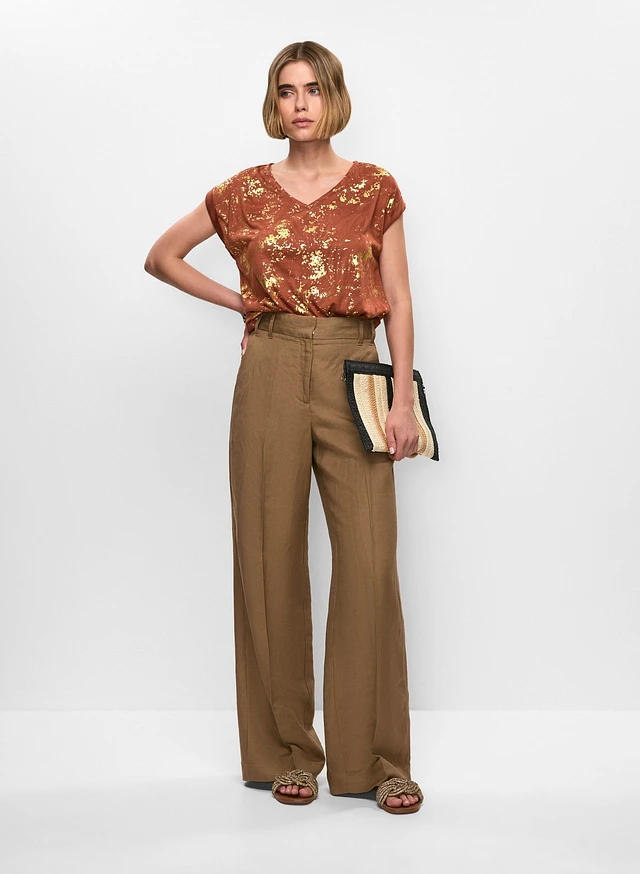 Foil Motif T-Shirt & Wide Leg Pants