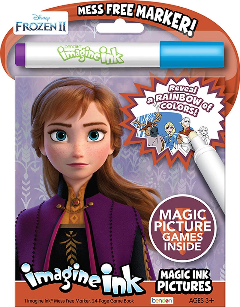 One Imagine Ink marker magically reveals a rainbow of colours. Mess Free Marker magically reveals a rainbow of colours! These Imagine Ink picture books use a mess free marker to reveal a rainbow of colours as you draw on the page! Designed to be used with the included magic ink marker, a clear marker that will not visibly mark most other items, the imagine ink picture books are perfect for travel, holidays, or any time! 24pages of games and activities. Search for Hidden Images on every page!