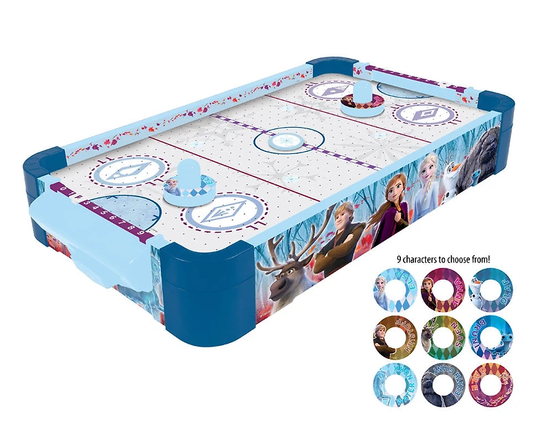 R Exclusive, only available at Toys R Us Canada. Puck glides on a cushion of air. Play with your favourite Frozen characters! Select your character, then go Head-to-head against your rival! 6 characters to choose from!