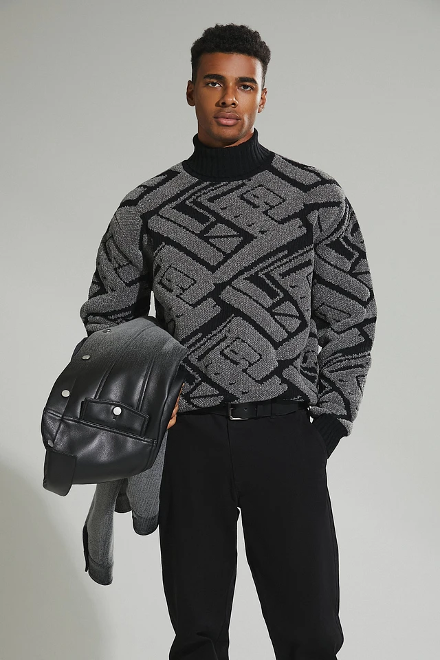 Ardene Fuzzy Knit Turtleneck Sweater in Grey | Size | Polyester