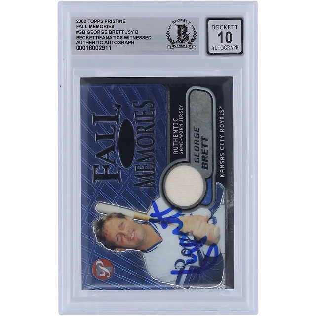 George Brett Kansas City Royals Autographié 2002 Topps Pristine Fall Memories Jersey Relic #FM-GB #/1000 Beckett Fanatics Witnessed Authenticated Card