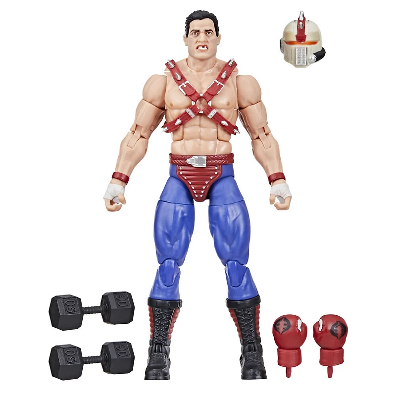 G.I. Joe is a highly skilled, on-demand, special operations force of men and women from around the globe tasked with defending the world from Cobra, a ruthless criminal organization bent on total domination. The brave members of G.I. Joe are prepared to seek out Cobra in any environment on the planet. Wherever there's trouble, G.I. Joe is there. New to the G.I. Joe Classified Series line, Big Boa comes ready for adventure, with multiple points of articulation for high poseability. This Big Boa figure contains 5 character-inspired accessory pieces including helmet, 2 dumbbells, and removable boxing gloves to cover his bloodied knuckles. Cobra troopers can be an unruly bunch at times. They aren't motivated by patriotism, unit loyalty, honor or sense of duty. It takes a brutal, unfeeling taskmaster to whip them into fighting form and Big Boa fits the bill to a tee. He has a voice like a bullhorn, fists the size of frozen turkeys and the disposition of a rabid grizzly bear. G.I. Joe and all related characters are trademarks of Hasbro.