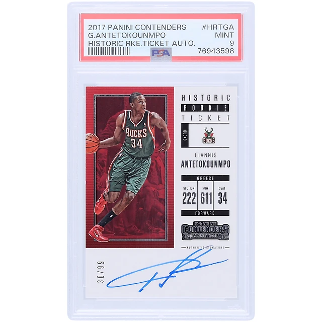Giannis Antetokounmpo Milwaukee Bucks Autographed 2017-18 Panini Contenders Historic Rookie Ticket #HRT-GA #/99 PSA Authenticated 9 Card