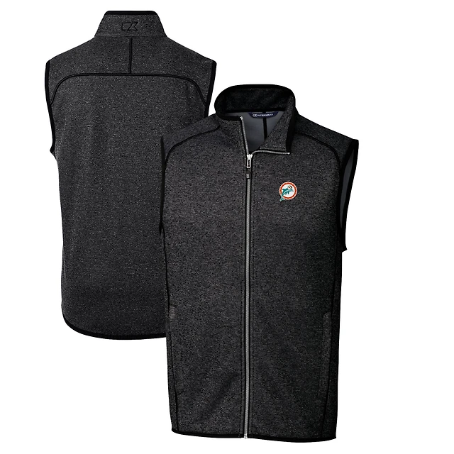 Gilet en tricot zippé avec logo rétro des Dolphins de Miami pour homme, Cutter & Buck, couleur anthracite chiné