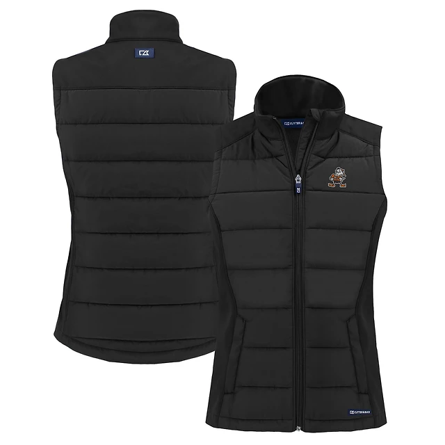 Gilet hybride à fermeture éclair intégrale en softshell recyclé et noir pour femme, Cutter & Buck, Cleveland Browns, Throwback Evoke