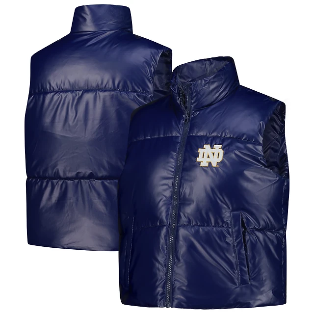 Gilet matelassé court sans manches à fermeture éclair intégrale ZooZatz bleu marine pour femme, motif Fighting Irish de Notre Dame