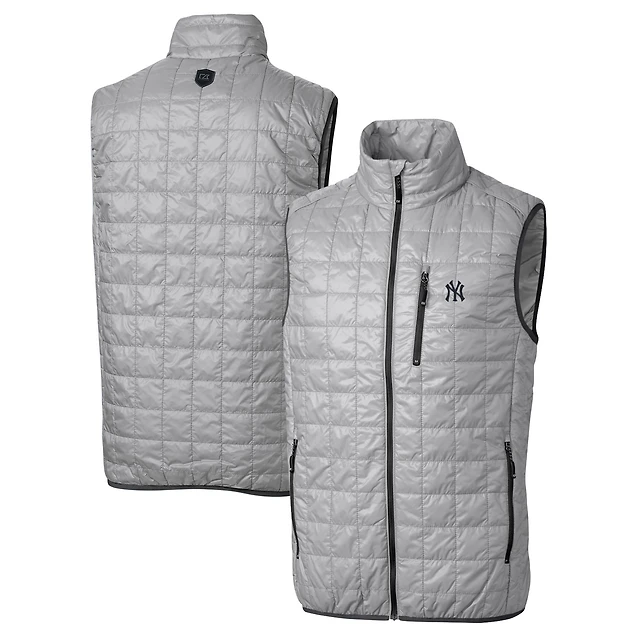 Gilet matelassé entièrement zippé Rainier des Yankees de New York pour homme, gris, Cutter & Buck