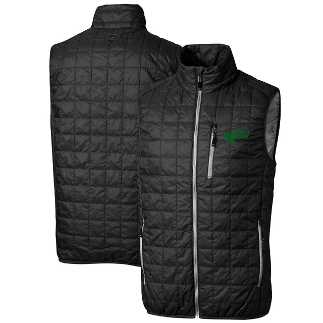 Gilet matelassé entièrement zippé Rainier PrimaLoft Eco pour homme, noir, North Texas Mean Green, taille grande et