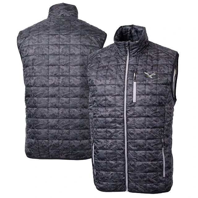 Gilet matelassé imprimé entièrement zippé et isolé PrimaLoft Eco pour homme, noir, des Philadelphia Eagles, Cutter & Buck