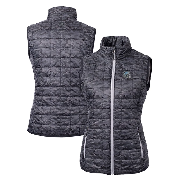 Gilet matelassé isolant entièrement zippé Rainier PrimaLoft Eco pour femme avec logo casque des Lions de Detroit, noir Cutter & Buck