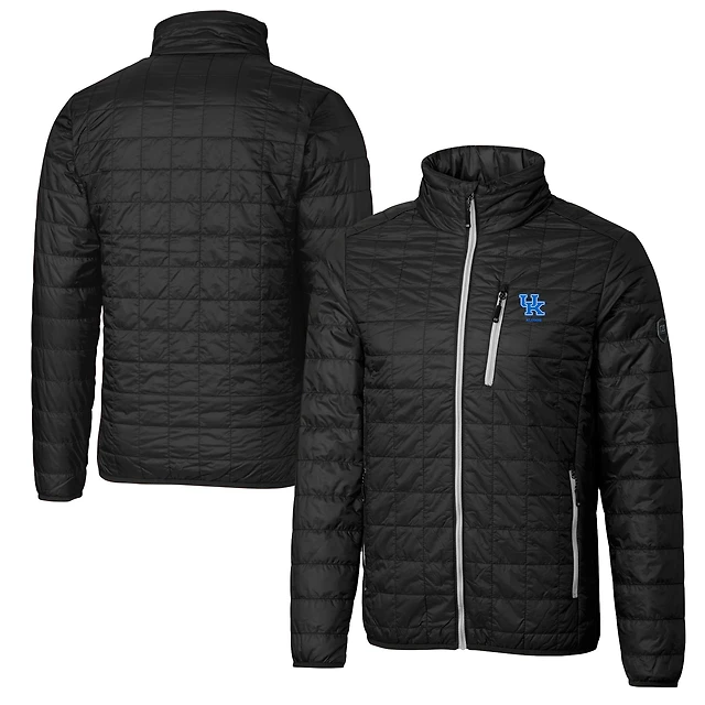 Gilet matelassé isolant entièrement zippé Rainier PrimaLoft Eco pour homme, noir, avec logo des anciens Kentucky Wildcats, Cutter & Buck
