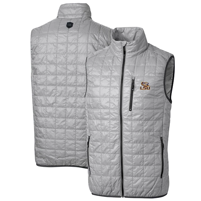 Gilet matelassé Rainier PrimaLoft Eco à fermeture éclair intégrale pour homme, gris Cutter & Buck, LSU Tigers, grandes tailles