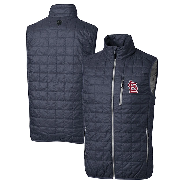 Gilet matelassé zippé Rainier pour homme, bleu marine chiné, de la marque Cutter & Buck, des Cardinals Saint-Louis, taille grande et