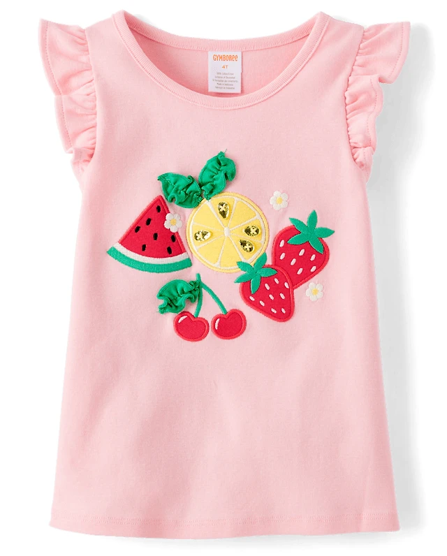 Girls Embroidered Graphic Ruffle Top - Little Essentials