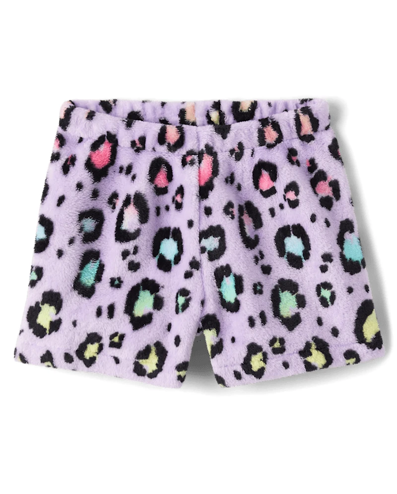 Girls Leopard Pajama Shorts - Cozy Fleece