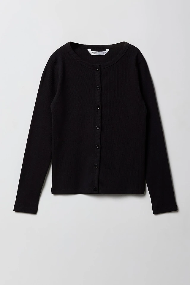 Girls Ribbed Button-Up Cardigan