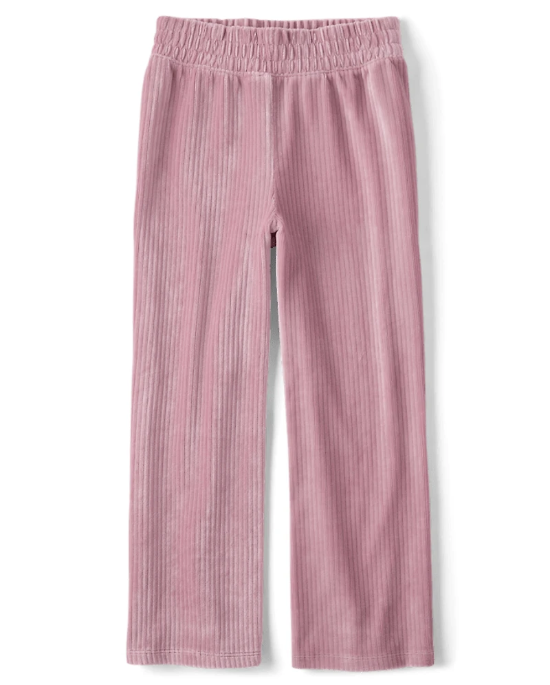 Girls Ribbed Velour Wide Leg Pants