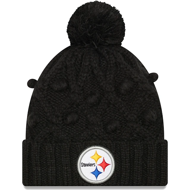 Girls Youth New Era Black Pittsburgh Steelers Toasty Cuffed Knit Hat with Pom