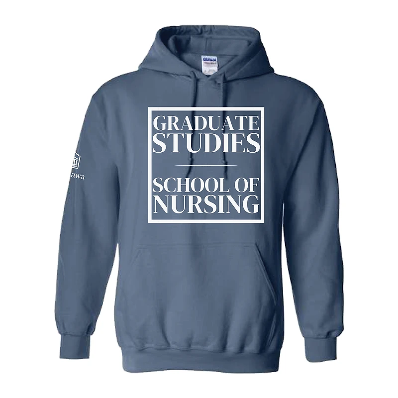 The Gildan Hooded sweatshirt comes with a drawstring hoodie and weighs 8 oz./yd² (US) or 13.5 oz./L yd (CA). It’s made from a comfortable blend of 50% cotton and 50% polyester, featuring a large logo on the front and the uOttawa stacked logo on the sleeve.