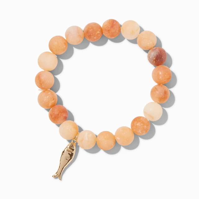 Gold-tone Fish Charm Beaded Stretch Bracelet