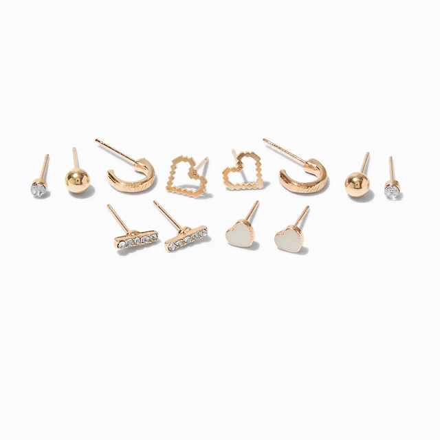 Gold-tone Mixed Heart Earring Stackables Set - 6 Pack