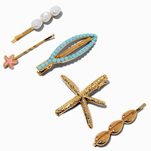 Gold-tone Mixed Starfish Hair Clips & Pins - 5 Pack