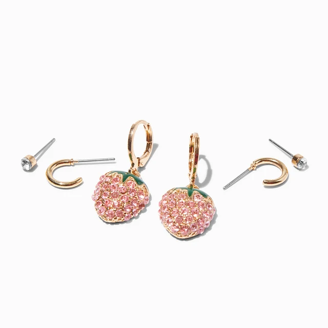 Gold-tone Pavé Strawberry Earring Stackables - 3 Pack