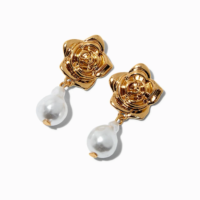 Gold-tone Rose & Pearl Micro Drop Earrings
