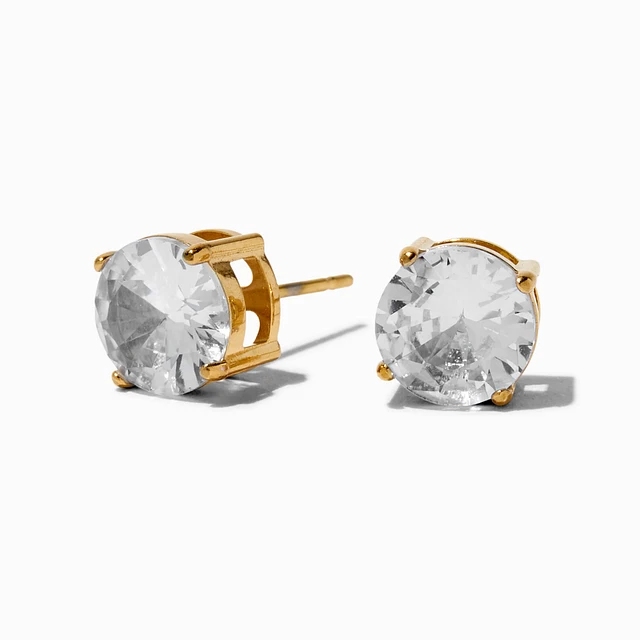 Waterproof Gold Plated Stainless Steel Cubic Zirconia Stud Earrings 7 MM