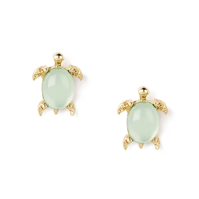 Gold-tone Turtle Mint Crystal Shell Stud Earrings