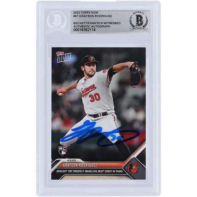 Grayson Rodriguez Baltimore Orioles a autographié la carte Topps 2023 maintenant disponible #NNO Beckett Fanatics a été témoin de la carte de recrue authentifiée