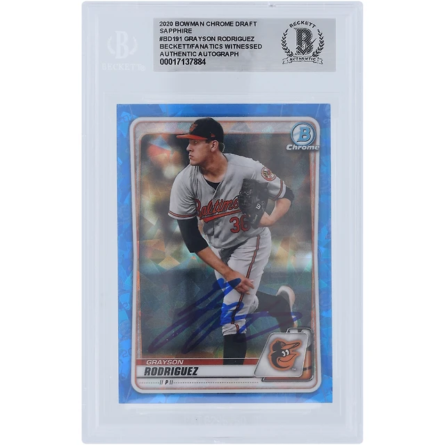 Grayson Rodriguez Baltimore Orioles Autographed 2020 Bowman Chrome Draft Sapphire #BD-191 Beckett Fanatics Witnessed Authenticated Card