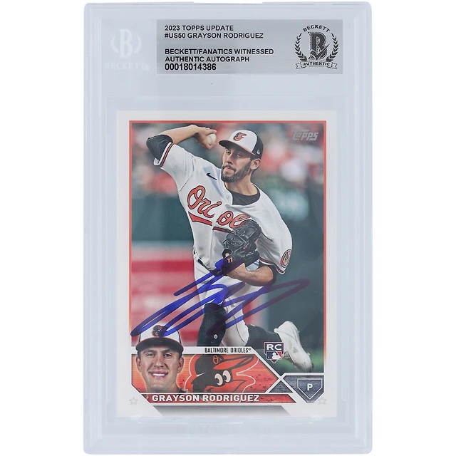 Grayson Rodriguez Baltimore Orioles Autographié 2023 Topps Mise à jour #US50 Beckett Fanatics a vu une carte de recrue authentifiée
