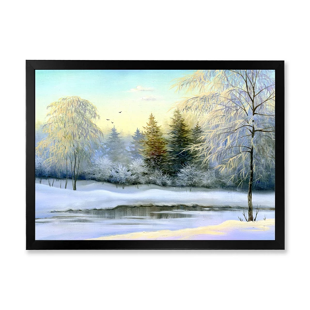 Green Trees Beautiful Winter Landscape Canvas Wall Art Print