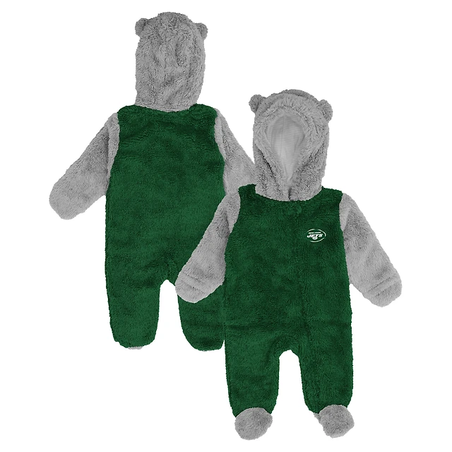 Grenouillère en polaire verte à fermeture éclair pour nouveau-né et nourrisson, motif Game Nap Teddy des New York Jets