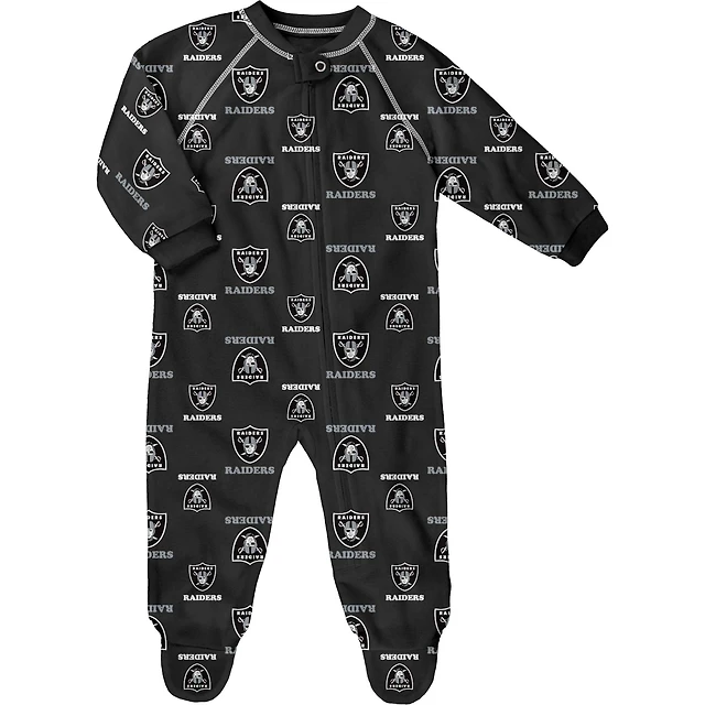 Grenouillère noire à imprimé intégral Las Vegas Raiders pour bébé avec fermeture éclair et raglan