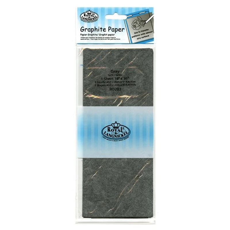 Easily transfer images to artwork or craft projects with Royal & Langnickel Graphite Paper makes it easy to transfer images onto your artwork or craft projects! This high-quality paper leaves no messy residue. It's suitable for nearly any surface: fabric, leather, plastic, wood, glass, china or metal. Contains one 18 x 36 in sheet.*Use Grey Graphite Paper on lighter surfaces.