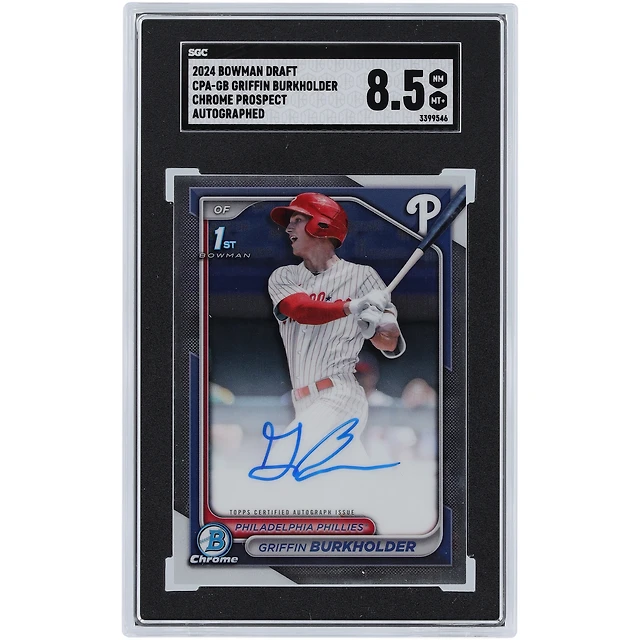 Griffin Burkholder Philadelphia Phillies Autographié 2024 Bowman Draft 1er Bowman Chrome Prospect #CPA-GB SGC Authentifié 8.5 Carte