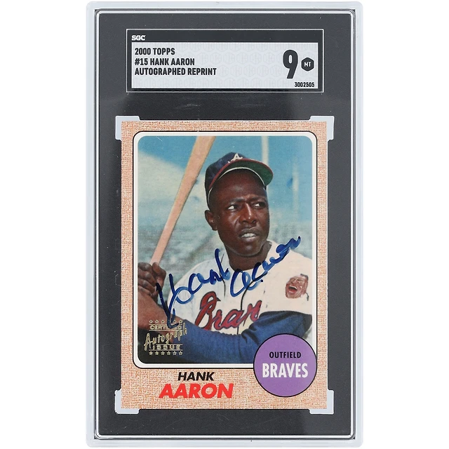 Hank Aaron Atlanta Braves Autographié 2000 Topps Réimpression Autographiée #15 SGC Authentifié 9 Carte