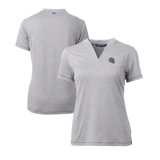 Haut à col en V extensible DryTec Forge pour femme, gris chiné, avec logo du casque des Lions de Detroit, Cutter & Buck